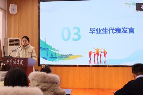 毕业生代表赵美、张志颖、刘梓萌依次发言,他们分享了各自在求职过程中的经验与感悟,从简历制作到面试技巧,从心态调整到职业规划,为同学们提供了宝贵的借鉴。
