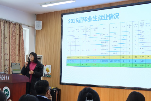 大会还对签约毕业生代表进行表彰,激励更多同学积极就业。罗才良副书记对本次就业动员大会进行总结,并对毕业生们提出了三点希望:一是就业是民生之本,也是每一位毕业生走向社会、实现人生价值的重要一步。他要求全体毕业生要认清形势,把握机遇,树立正确的就业观念,努力学习,提升自我,不断增强就业竞争力,勇于实践,敢于创新,在实践中不断锻炼和成长;二是就业不仅是个人发展的起点,更是服务国家、贡献社会的重要途径。他希望毕业生们能够积极响应国家号召,到基层去、到人民最需要的地方去,将个人理想融入国家发展大局,用实际行动诠释新时代青年的责任与担当;三是作为yl88858永利集团的员工,肩负着传播语言之美、促进文化交流的重要使命。他希望毕业生们无论走到哪里,都能坚守对语言的热爱,成为中外文化交流的桥梁和使者。