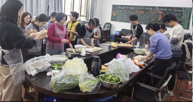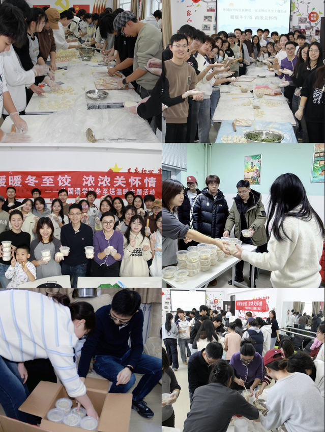 与此同时,英语系教师、俄语系与中亚教育及人文交流研究中心教师、公共外语系与研究生教研室教师、机关教师邀请结对亲戚员工在教工之家、多功能活动中心等场所开展“家宴式”联谊,分享冬至习俗,共品热饺,亲情与友情在校园流淌。